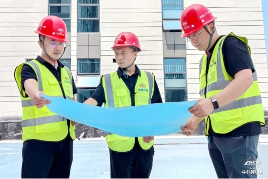 徐偉(中)與同事研究施工圖紙(中鐵二十一局 供圖)
